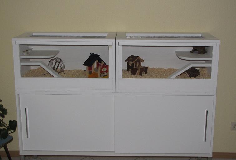 Hier sehen eingerichtete Käfige von unseren Kunden.